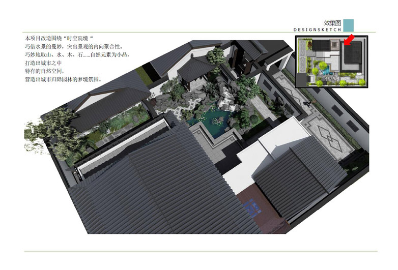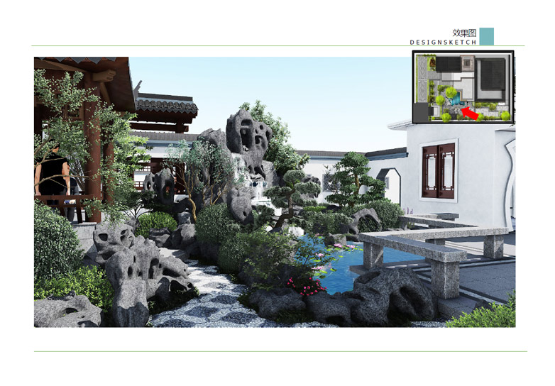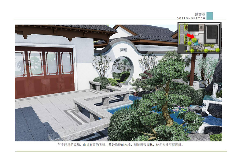 師法自然,融于自然,順應(yīng)自然,表現(xiàn)自然——這是中國(guó)古代園林體現(xiàn)“天人合一”民族文化之所在,是獨(dú)立于世界之林的最大特色,也是永具藝術(shù)生命力的根本原因。中式景觀設(shè)計(jì)借鑒中國(guó)古典園林的造園手法,結(jié)合現(xiàn)代的景觀元素,共同營(yíng)造豐富多變的景觀空間,達(dá)到步移景異、小中見(jiàn)大的景觀效果。