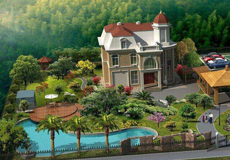 別墅花園或者前院是在風水上可以當做明堂來用,自然以為佳。為了符合這個要求,圍墻能和屋面平行。否則的話,院子的形狀不平整,所蓄的氣就不能平衡,難以成為吉氣。
