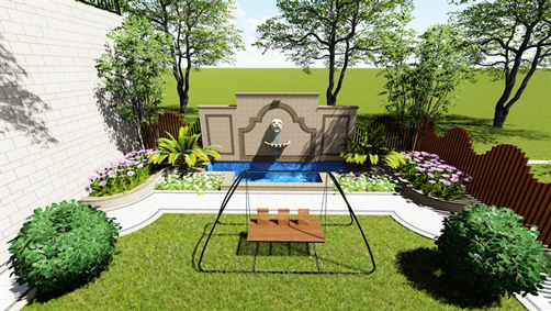 3、必備元素:草坪、灌木、鮮花、躺椅、秋千、燒烤架等。