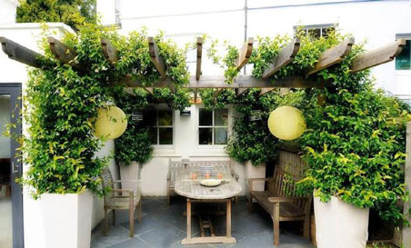1)衣食住行是人們生活較基本的需要,其中有一句俗話是這樣說的“民以食為天”,從這就不難看出人們對食的看重,若是別墅庭院的面積夠大,可以設(shè)置一個室外餐廳,用木質(zhì)格柵做頂,在四周稍稍栽種一些葡萄,當葡萄的藤蔓爬滿格柵時,在此處休息,聊天喝茶,也是別有一番風味。